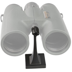 Wer kein ausgesprochener Kraftmensch ist, merkt bald, wie schnell einem die Arme bei der Anwendung selbst eines relativ leichtgewichtigen Fernglases schwer werden. Ab 10facher Vergrößerung halte ich einen Fernglasadapter für die Fixierung auf einem Fotostativ für absolut notwendig. Die Montage erfolgt rasch an die Adapterplatte eines handelsüblichen Fotostatives. Das Festziehen der Schraube am Fernglas kann etwas fummlig sein. Bis zu einer Horizonthöhe von ca. 40° können die Himmelsobjekte auch recht komfortabel beobachtet werden. Muss man den Blick noch steiler nach oben wenden, kann man bald mit dem Gesicht mit dem Fotostativ in Konflikt geraten. Eine etwas weitere, ggf. auch seitliche Ausladung der Fernglasfixierung wäre dann von Vorteil.
