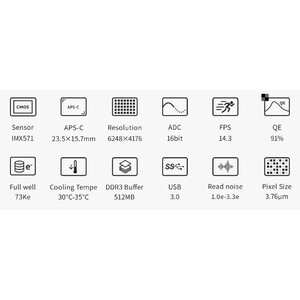 • Hohe Auflösung durch 3,76-µm-Pixel - ideal für lichtstarke und scharfe Teleskope, wie Apos, Hyperstar, Celestron Faststar, lichtstarke Newtonteleskope
