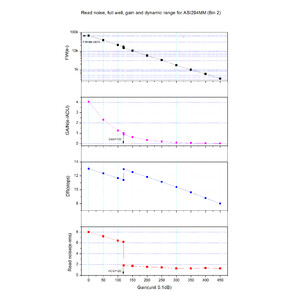 Wenn das Gain (Vorverstärkung) höher als 120 eingestellt ist, wird das Ausleserauschen unter 2e reduziert. Trotz extrem hoher Empfindlichkeit erhalten Sie dadurch rauscharme Bilder.
