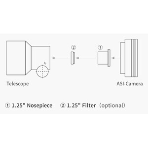 Die wichtigsten Anwendungsgebiete der ASI 585MC sind Mond- und Planeten-Fotografie mit hoher Detailauflösung, Sonnenfotografie (mit geeignetem Filter!!) mit hoher Detailauflösung, Langzeitbelichtung von Nebeln und Galaxien ohne stromzehrende Kühlung, Infrarot-Aufnahmen zur Verringerung der Einflüsse des Seeings (dadurch schärferer Luminanzkanal), Autoguidingkamera (Autoguidinganschluss ist vorhanden), sowie auch EAA (elektronisch unterstützte Astronomie) bei Planeten, Mond und Sonne. Durch die feinen 2,9µm Pixel erreichen Sie bereits ab dem Öffnungsverhältnis von f/10 (Maksutov-Cassegrain Teleskope!) eine sehr hohe Auflösung, welches den Einsatz von Barlowlinsen überflüssig macht. Diese Kamera ist zwar ungekühlt (während der Aufnahmen erwärmt sich der Sensor), aber durch das eingebaute PCS wird die Wärme vom Sensor über ein Wärmeleitpad nach außen abgleitet. Die Sensortemperatur wird so um bis zu 15 Grad Celsius gegenüber Kameras ohne PCS reduziert!