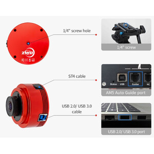 Diese ungekühlte CMOS-Kamera bietet eine sehr hohe Auflösung und ist für Mond- und Planeten-Fotografie, sowie eingeschränkt auch für DeepSky-Fotografie verwendbar.