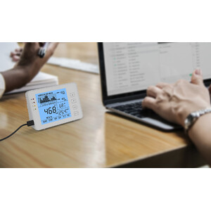 Der CO2 Monitor 1200P zeigt Ihnen die gegenwärtige CO2 Konzentration, die Temperatur und relative Luftfeuchtigkeit an. Mit dem Ampelsystem haben Sie sofort einen Index, ob es wieder Zeit zum Lüften ist. Das Gerät eignet sich hervorragend zur Überwachung der Luftqualität im Büro, der Schule oder Zuhause. Durch seine kompakte Bauweise kann es als Tischgerät oder zur Wandmontage genutzt werden.