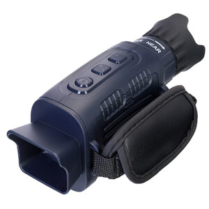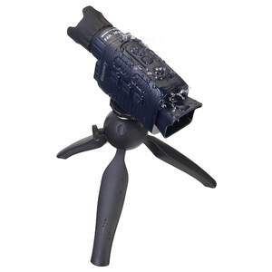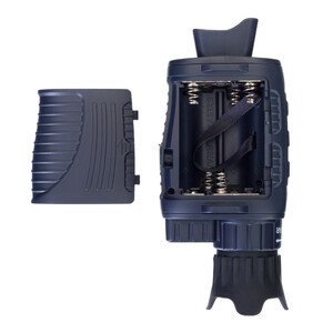 Das optisch-digitale System dieses Geräts befindet sich in einem wasserbeständigem Gehäuse (IP54) mit ergonomischem Design. Das Fernrohr liegt gut in der Hand. Die Batterien halten zwischen 4 und 10 Stunden, je nachdem, wie intensiv die IR-Beleuchtung verwendet wird. Das Gerät wird mit einem Tischstativ geliefert, das sich perfekt für lange stationäre Beobachtungen und die Bildstabilisierung bei Videoaufnahmen eignet.