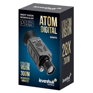 Das Levenhuk Atom Digital DNM70 Monokular ist ein zuverlässiges Nachtsichtgerät, das für Beobachtungen bei schlechten Lichtverhältnissen entwickelt wurde. Mit seiner 7-fachen optischen Vergrößerung und einem zusätzlichen Digitalzoom von 1-, 2-, 3- oder 4-facher Vergrößerung ermöglicht es Ihnen, Objekte in der Nacht aus einer Entfernung von bis zu 300 Metern detailliert zu beobachten. Tagsüber bietet es Ihnen eine uneingeschränkte Sicht. Das hochwertige optische Glas liefert helle und scharfe Bilder. Ein breites Sichtfeld von 20° und eine Nahfokussierung von 5 Metern ermöglichen das schnelle Anvisieren und Verfolgen von Objekten in Wäldern, offenen Gebieten und städtischen Umgebungen.
