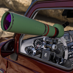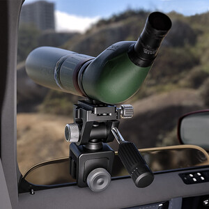Diese Autofenstermontierung stützt Ihr otisches Intrument für eine entspannte Beobachtung oder Fotografie aus dem Auto heraus. Die hohe Tragkraft erlaubt dabei die Verwendung von Spektiven oder Kameras mit Teleobjektiven.