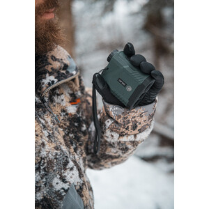 Der kompakte Entfernungsmesser bietet ein 6x optische Vergrößerung. Alle Linsen sind mehrfachvergütet und bieten ein großzügiges Sehfeld. Der Entfernungsmesser arbeitet von 6-800 Meter Distanz mit einer Genauigkeit von +/- 1 Meter. Das Gerät ist wasserdicht nach IPX5-Norm.