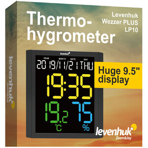 Alle Informationen werden auf dem praktischen, hintergrundbeleuchteten Display angezeigt; die Messwerte unterscheiden sich farblich. Das Levenhuk Wezzer PLUS LP10 kann mit Batterien oder Netzstrom betrieben werden. Mit dem ausklappbaren Ständer können Sie das Thermohygrometer bequem auf dem Nachttisch, der Fensterbank oder dem Schreibtisch platzieren.