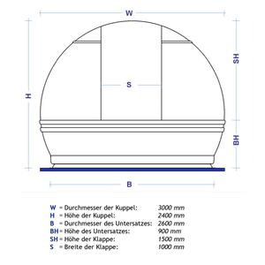 Bitte beachten Sie, dass die Kuppel aufgrund ihrer Größe per Spedition geliefert werden muss und der Fahrer die Kuppel aus rechtlichen Gründen nicht selbst abladen darf. Für das Abladen der Kuppel sind mehrere Personen nötig. Alternativ bieten wir auch einen kompletten schlüsselfertigen Aufbauservice inkl. der Abladung an.