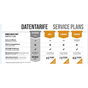 In den ersten 30 Tagen nach der Aktivierung Ihrer Kamera nutzen Sie den Premium-Datentarif. So können Sie sich mit den Funktionen Ihrer Kamera vertraut machen und die für Sie und Ihr Anwendungsgebiet passende Einstellung finden. Nach diesen 30 Tagen wechseln Sie automatisch in den kostenlosen Datentarif. Dieser beinhaltet 100 Bilder, die Sie übertragen können. Danach arbeitet die Kamera wie eine „gewöhnliche“ Wildkamera. Ihnen geht also nichts verloren.