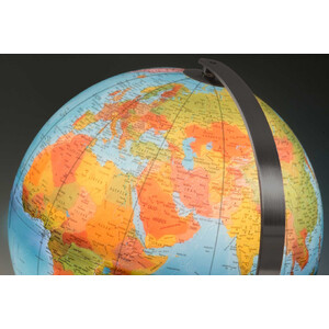 Der Globus besteht aus einer traditionell handkaschierten Kugel mit einem Durchmesser von 37 Zentimeter und einer Gesamthöhe von 42 Zentimeter. Die Globuskugel ist gefasst in einem formschönen Meridian aus gebürstetem Edelstahl und ruht auf einen Edelstahl-Fuß.