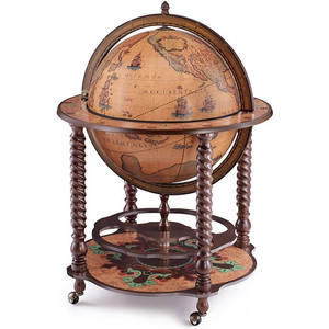 Der Bar-Globus erfreut Sie und Ihre Gäste mit einer geschmackvollen Replik eines Kartenbild aus dem 16. Jahrhunderts. Die aufklappbare Kugel enthält ein geräumiges Getränkefach für etwa 4 Flaschen und 12 Gläser. Auf der unteren Ablagefläche, die mit Naturfarben auf Wasserbasis verziert ist, können weitere Flaschen gelagert werden.