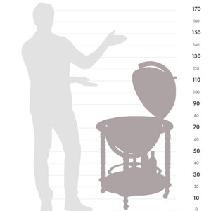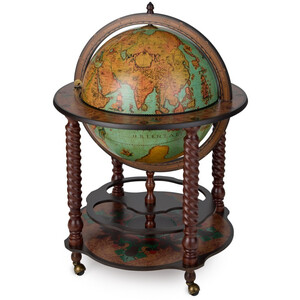 Der Bar-Globus erfreut Sie und Ihre Gäste mit einer geschmackvollen Replik eines Kartenbild aus dem 16. Jahrhunderts. Die aufklappbare Kugel enthält ein geräumiges Getränkefach für etwa 4 Flaschen und 12 Gläser. Auf der unteren Ablagefläche, die mit Naturfarben auf Wasserbasis verziert ist, können weitere Flaschen gelagert werden.