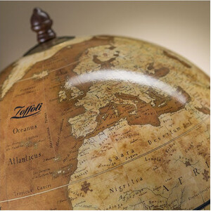 Zoffoli hat die übliche Verwendung der lateinischen Bezeichnungen beibehalten, da diese ein allgemein verbindendes Merkmal der unterschiedlichen Kartografien darstellen. Die Zeichnungen geben die für die Zeit gängigen ornamentalen und mythologischen Motive wieder. Die Segelschiffe stellen eine Nachbildung jener Schiffe dar, die die runde Form der Erde ganz real nachwiesen. Diese geografische Dreidimensionalität kann nur ein Globus für das menschliche Auge nachvollziehbar darstellen.