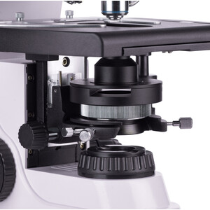 Zum Beleuchtungssystem zählen ein Abbe-Kondensor mit Aperturblende sowie ein Schieberhalter. In den Schlitz können Sie entweder einen Dunkelfeldschieber oder einen Phasenschieber einsetzen. So können Sie schneller zwischen verschiedenen Forschungstechniken wechseln. Das Mikroskop ist zudem mit einer Feldblende ausgestattet. Daher können Sie die Köhlersche Beleuchtungsmethode verwenden.
