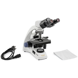 Beobachtungen geht. Schüler und Studenten können Proben einfach präparieren und mit bis zu 1000-facher Vergrößerung betrachten. Dabei sorgt die LED- Durchlichtbeleuchtung mit Abbe-Kondensor für eine gleichmäßige, helle Ausleuchtung – perfekt, um komplexe Strukturen deutlich zu erkennen.