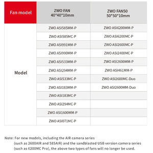 Bitte beachten Sie die Tabelle, aus der Sie entnehmen können, ob Ihr Kameramodell den FAN oder FAN 50 Lüfter benötigt.
