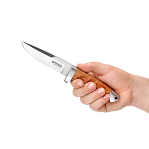 Seit vielen Jahren ist das Böker Vollintegral ein nicht mehr wegzudenkender Bestandteil unseres Sortiments, und gleichzeitig eine Ikone unter den Böker- Jagdmessern. Die stabile Bauweise des aus einem Stück Stahl gesenkgeschmiedeten Messers und die ausgezeichnete Ergonomie der durchdacht gestalteten Griffschalen haben schon Legionen von Jägern begeistert. Nun haben wir das Vollintegral in einigen Punkten weiter optimiert. So sind der Griff insgesamt sowie die Oberflächen an Parierelement und Knauf stärker gerundet, um einerseits die Handlage zu optimieren, und andererseits die Optik noch eleganter zu gestalten. Des weiteren werden die Griffschalen zur Minimierung von Fertigungstoleranzen präzisionsgefräst, um die Passgenauigkeit und die Ergonomie auf das höchstmögliche Niveau zu heben. Der Klingenschliff wird vom bisherigen Hohlschliff zur Steigerung der Stabilität auf einen Flachschliff umgestellt. Als Klingenstahl kommt nach wie vor der bewährte 440C zum Einsatz. Lieferung mit Lederscheide. Mit Beschalung aus handverlesenem zertifiziert importiertem Palisanderholz.