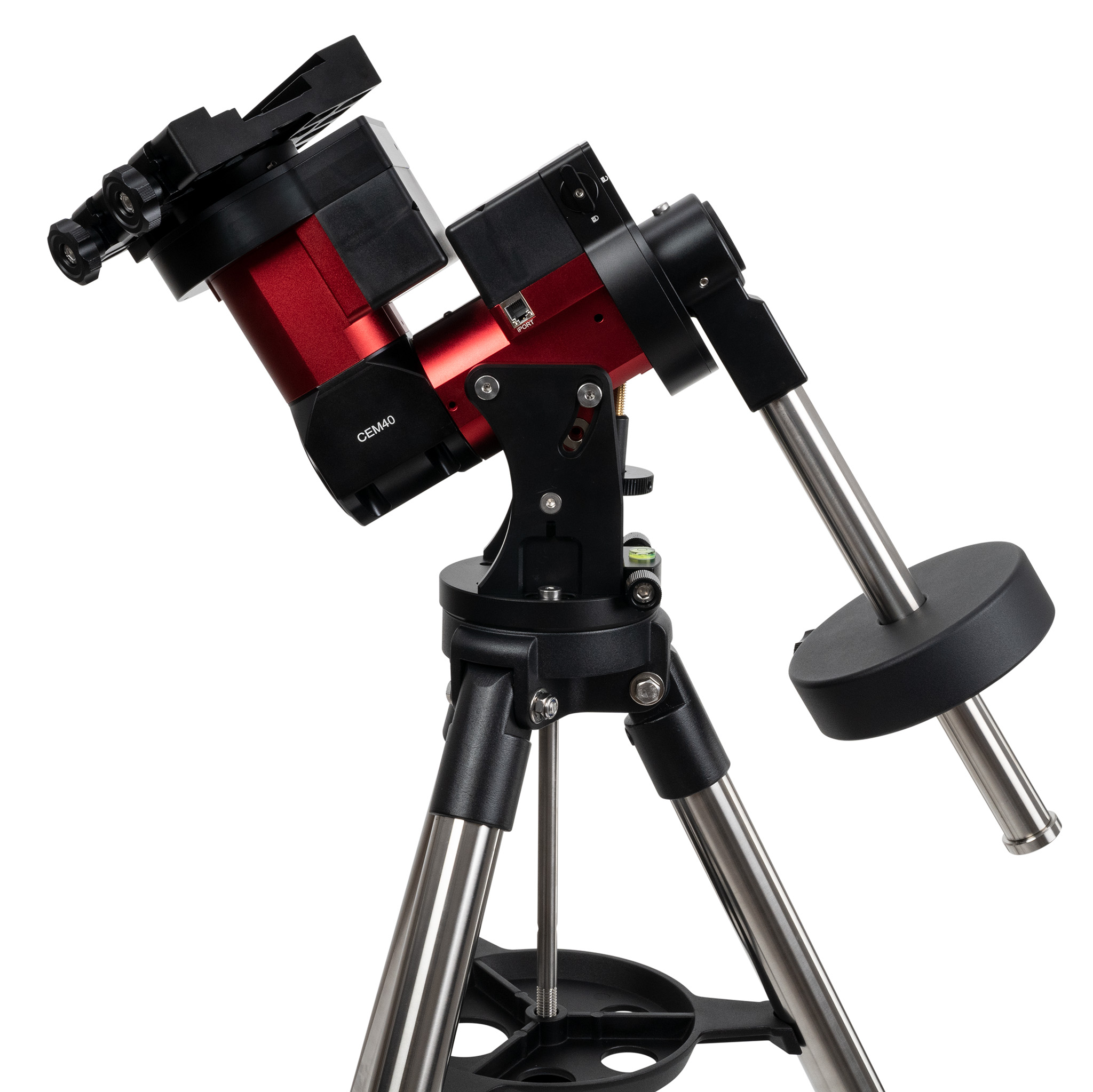 Die Montierung wiegt nur 8,2 Kilogramm, trägt aber optische Instrumente und Zubehör bis zu 18 Kilogramm. Dieses sehr gute Verhältnis von 2,5 aus Zuladung und Gewicht ist der Grund, warum die CEM40 so vielseitig ist. Sie können Sie an die besten Beobachtungsplätze unter dunklen Himmel transportieren oder auf Ihrer Gartensternwarte auf eine kleine Säule setzen.