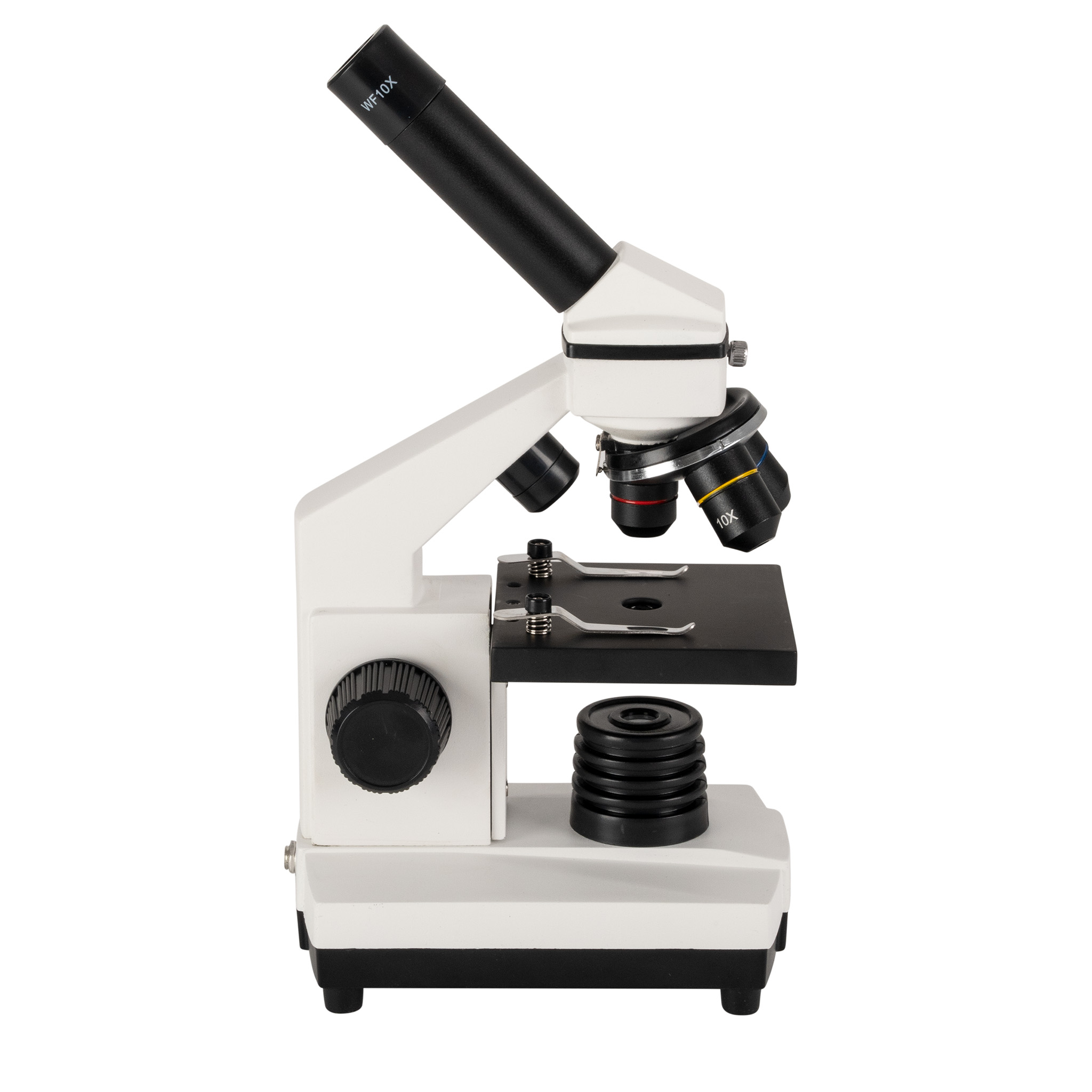 Ein Okular (WF 10x ) und drei verschiedene Objektive im Objektivrevolver. Damit wählen Sie Ihre Wunschvergrößerung von 40- bis 400-fach. Für ein Mikroskop dieser Klasse sind das sinnvolle Vergrößerungen. Sie profitieren stets von einem klaren und kontrastreichen Bild.