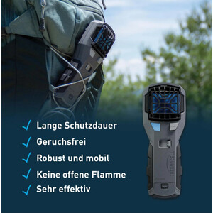 Speziell für Camping und Backpacking wurde das Thermacell MR-BP BACKPACKER Gerät zur Mückenbekämpfung entwickelt. Die Thermacell-Technologie bietet einen effektiven Schutzbereich von etwa 20 Quadratmetern, der bis zu 98% Stechmücken und ähnliche blutsaugenden Insekten fernhält. Verwendet werden Wirkstoffplättchen, die mit einem Mini-Butangasgrill mit Piezozündung (keine offene Flamme) erhitzt werden und einen der Natur nachempfundenen Abwehrstoff abgeben. Beim MR-BP wird dazu eine Gaskartusche mit Standard-Schraubgewinde verwendet (Kartusche nicht im Lieferumfang). Das 114 g leichte Gerät ist einfach zu bedienen und sicher im Betrieb. Da die Abwehrstoffe geruchlos sind, ist Thermacell die ideale Alternative zu Lotionen und Sprays, die auf die Haut aufgetragen werden. Eine Erstausstattung an Verbrauchsmaterial (3 Wirkstoffplättchen) für 12 Einsatzstunden gehört zum Lieferumfang.