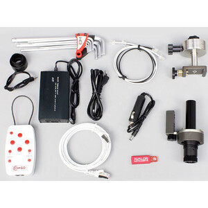 Hochpräzisionsmotoren erlauben Geschwindigkeiten von 0,05x bis 1000x. Das STARGO Interface an der Montierung weist viele nützliche Anschlüsse auf. Neben dem klassischen ST-4 Guidingport besitzt die Steuerung 3 Auxiliary Ports für diverse Geräte, einen Port zum Anschluss einer DSLR-Kamera, einen USB-Anschluss und einen Anschluss für Motorfokussierer.