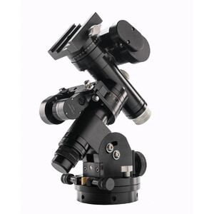 - Aufnahme für optionales Polsucherfernrohr, doch erfolgt die Polausrichtung standardmäßig elektronisch.
