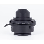 - 4-fach Objektivrevolver , rückwärtsgerichtet, 3 zentrierbare Positionen