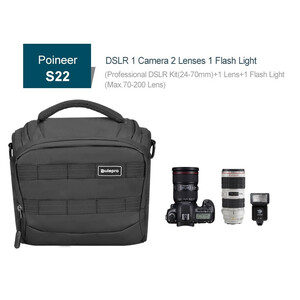 Die Poineer Schultertasche kann Kameras unterschiedlicher Größe mit mehreren Objektiven aufnehmen, von spiegellosen Kameras bis hin zu professionellen Kameras mit 70-200F2.8-Objektiv (Modelle S22 und S26 können 1 DSLR mit 70-200F2.8-Objektiv aufnehmen). Sie ist in drei Tragemodi erhältlich: als Handtasche, Schultertasche und Hüfttasche. Die Fronttasche, Seitentasche und Netztasche bieten Platz für Speicherkarten, Batterien, Kabel und andere Gegenstände. Erhältlich in 4 Größen