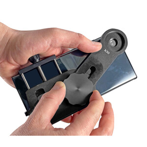 Der SMARTOSCOPE VARIO-Adapter kann die meisten Smartphone-Modelle aller Marken aufnehmen, auch wenn sich das Telefon noch in einer Schutzhülle befindet. Große und kleine Smartphones werden mit einer verstellbaren Klemmhalterung am Adapter befestigt.