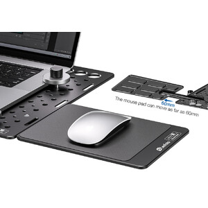 Die ideale Ergänzung für den Laptophalter. Das Mouspad mit den Abmessungen 200mm x 150mm bietet ausreichend Platz, um bequem mit der Mouse agieren zu können. Durch die Materialstärle von 5mm und zwei Schrauben die in die Gewindebohrungen des Laptop Tray geschraubt werden, haben Sie eine stabile Verbindung und Arbeitsfläche. Das Mousepad lässt ich am Haltearm um 60mm verschieben. Das Packmß liegt bei 320mm x 150mm.