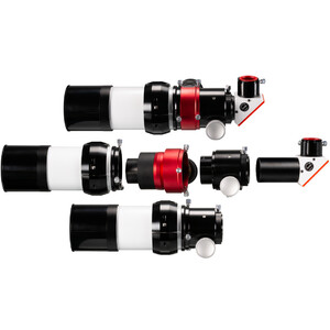 Der besondere Clou der Allround-Teleskope von Lunt ist ihr modularer Aufbau: Sie können das rot lackierte H-alpha-Etalon einfach ausbauen und durch einen optionale erhältlichen Umbausatz ersetzen. Dann steht Ihnen ein hochwertiger ED-Apo mit FPL-51-Sonderglas für die nächtliche Beobachtung und Astrofotografie zur Verfügung. Sie können nach dem Umbau aber auch die Sonne im Weißlicht beobachten, indem Sie zum Beispiel einen Herschelkeil benutzen. Auch die Verwendung mit einem CaK-Modul für die Beobachtung der Sonne in dieser Spektrallinie ist möglich - ein wahrlich universelles Teleskop!