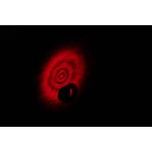 Wie an einem Cheshire Okular kann am 45° Keil des tuBlugs während der Justage die Laserabbildung von konzentrischen Ringen der Spiegel, sowie die Mittenmarkierung des Hauptspiegels einfach erkannt werden. Je nach Abbildung wird dann sofort der Fang-, oder Hauptspiegel entsprechend auf die optische Achse eingestellt und korrigiert.