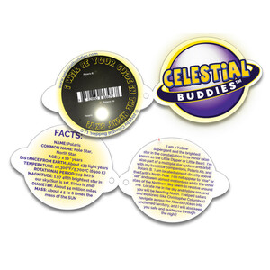 Dieser Celestial Buddie stellt den hellsten Stern im kleinen Bären dar: den Polarstern. Er wird von zwei kleineren Begleitern, Polaris Ab und Polaris B umrundet. Dadurch, dass der Polarstern sich kaum zu bewegen scheint, half er vielen Abenteurern wie Columbus als Mittel zur Feststellung der geographischen Nordrichtung.