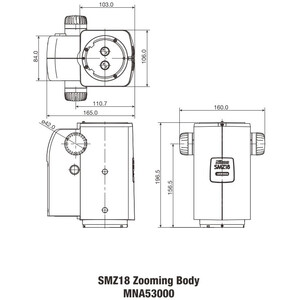 > Nikon Stereokopf SMZ18, manual , parallel optics, achromate, Zoom Head, bino, 7.5-135x, click stop, ratio 18:1, 15°