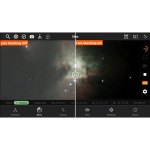- Live-Stacking für spektakuläre Bilder. Sehen Sie, wie die feinen Details hervortreten, wenn Sie mehr Bilder empfangen und das Signal-Rausch-Verhältnis erhöhen.