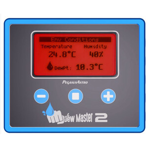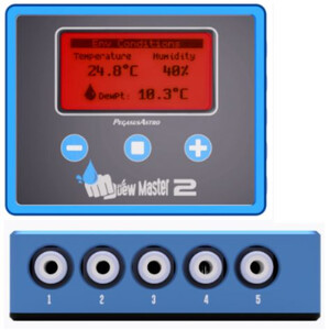 DewMaster wurde für den visuellen Astronomen entwickelt. Schließen Sie bis zu fünf Tauheizungen an und steuern Sie diese individuell über PWM-Tastverhältnis. Die vollständig digitale Bedienung und ein hochauflösendes rotes Display machen die Steuerung des Geräts schnell und einfach. Die verbrauchten Ampere und die Eingangsspannung können auf einen Blick abgelesen werden. Optional informiert Sie ein externer Temperatur- und Feuchtigkeitssensor über die relative Luftfeuchtigkeit, die Temperatur und den Taupunkt. Dank der automatischen Steuerung der Tauheizungen können Sie sich entspannt zurücklehnen, da Sie wissen, dass Ihre Optik bei hoher Luftfeuchtigkeit frei von Feuchtigkeit bleibt.