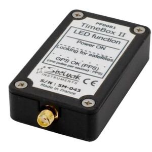 Die TimeBox II besteht aus einem GPS-Empfänger, einen Mikrokontroller (RP2040 Raspberry Pi Foundation) und eine USB-Verbindung für den Computer. Sie synchronisiert die innere Uhr des Computers mit UTC (Coordinated Universal Time) auf +/- 2 ms mittels GPS und liefert dabei auch die genauen Standortdaten aus. Beide Informationen sind für eine erfolgreiche Teilnahme an wissenschaftlichen Projekten zur Sternbedeckung erforderlich.