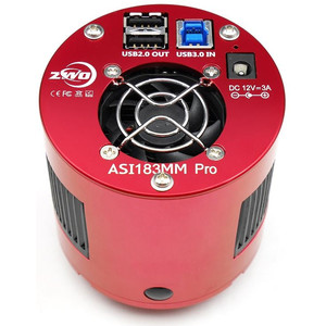 Die ASI183 ist eine weitere Kamera für DSO (Deep-Sky-Observation), Sonne- (wobei es bei H-alpha Probleme geben soll und deshalb die 1600 hierfür empfohlen wird), Mond- und Planetenbeobachtung. Sie hat einen größeren Chip (15.9mm Diagonale) als die ASI174 und nur 2.4µm große Pixel. Die Kamera lässt sich damit auch gut an kurzen Brennweiten einsetzen.