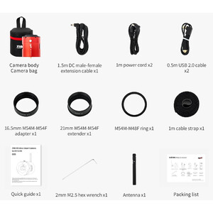 Dualband-WLAN: Die externe Dualband-Antenne, die sowohl 2,4-GHz- als auch 5-GHz-Frequenzen unterstützt, ermöglicht eine stabile und reibungslose Nutzung der Kamera innerhalb von 20 Metern. Mit der ASIAir-App von ZWO steuern Sie die Kamera und betrachten Sie die Bilder einfach per Smartphone.