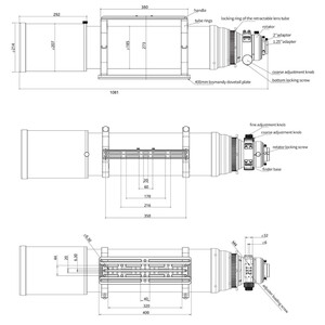 - Trotz großer Öffnung und langem Öffnungsverhältnis ist der 185APO sehr kompakt: Die kürzeste Gesamtlänge beträgt nur 1081 mm.