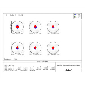 Der ASKAR FRA400 ist ein 5-Element-Apochromat nach Petzval . Im Objektiv sind 2 ED-Gläser verbaut für eine gute Korrektur des Farbfehlers. Der Apo ist korrigiert für Kameras bis Vollformat.