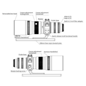 Die Tauschutzkappe bietet auch guten Schutz vor Streulicht und ist ausfahrbar. Der große Okularauszug hält auch schwere Kameras und ermöglicht durch die Mikrofokussierung ein sauberes Scharfstellen. 2", 1,25" und ein M68x1-Gewinde sind für Anschlüsse vorhanden.