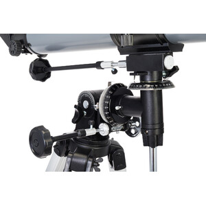 Die Montierung EQ-1: Diese parallaktische Montierung bietet bereits die Möglichkeit, Optiken auf den Polarstern auszurichten. Es kann für jeden Beobachtungsort die richtige Polhöhe bzw. geografische Breite eingestellt werden. Mit Feinbewegungen in der Rektaszensions- und Deklinationsachse lassen sich Objekte feinfühlig einstellen und verfolgen, ein Gegengewicht sorgt hierbei für die genaue Austarierung der Optik.