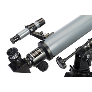 Die Optik AC 70/900: Dieser Refraktor sammelt mit einer Öffnung von 70mm bereits 100 mal so viel Licht wie das bloße Auge und damit auch wesentlich mehr Licht als klassische Einsteigerteleskope mit einer nur geringfügig kleineren Öffnung von 60mm. Somit besitzt es auch ein höheres Auflösungsvermögen und zeigt Ihnen mit einer maximalen Vergrößerung von 140x schon erste Details bei der Beobachtung der großen Planeten Saturn, Jupiter und Mars. Auch der Mond ist ein sehr lohnendes Objekt: Man kann wunderschön die Kraterlandschaft des Mondes beobachten, die je nach Phase immer in einem anderen Licht erscheint.