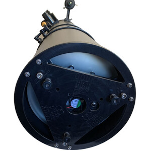 Spiegelzellen: Die beste Optik der Welt nützt nichts, wenn sie nicht richtig im Teleskop gehalten wird. Dieses Teleskop wird mit einer computeroptimierten Zelle aus eloxierten Aluminium mit eingebautem Kühlventilator (12 V DC) geliefert. Die Zelle verfügt über eine 9-Punkt-Lagerung mit Nylon66-Spitzen, die das Spiegelgewicht so gleichmäßig wie möglich über die 9 Punkte an der Rückseite des Spiegels verteilt.