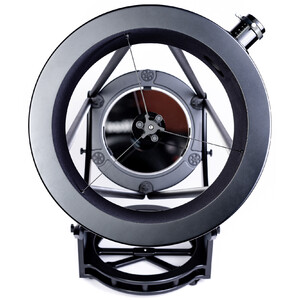 - Einfache Verwendung: Teflonpads und eine spezielle Lagerung der Grundplatte ermöglichen eine weitgehend reibungsfreie Nachführung auch bei hoher Vergrößerung. Der Widerstand der Basis (Azimuth) kann nach individueller Vorliebe eingestellt werden. Der Hut kann in zwei Positionen montiert werden, so dass der Einblick in den Okularauszug für Zenit oder Horizontbereich optimal ist. Da der Hauptspiegel so tief wie möglich sitzt, konnte die maximale Höhe des Okulareinblicks möglichst niedrig gehalten werden.
