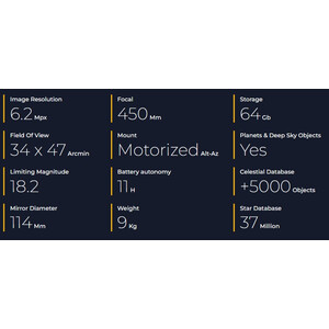 Das eQuinox 2 enthält eine eigene Datenbank mit 37 Millionen Sternen: Anders als das menschliche Auge, das nachts die meisten Sterne nicht unterscheiden kann, ist das Smart Teleskop in der Lage, stellare Objekte zu erkennen und ihre jeweiligen Positionen unter Verwendung von Autonomous Field Detection mit seiner Datenbank abzugleichen. Dadurch erhält das eQuinox 2 automatisch eine äußerst präzise Vorstellung von seiner Ausrichtung.