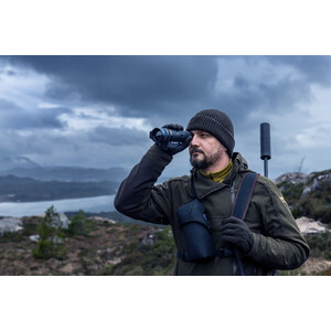 Ein Jäger muss sich schnell bewegen können. Eine gute Ausrüstung zeichnet sich dadurch aus, dass sie immer zur Hand ist, wenn sie gebraucht wird, und den Rest der Zeit unsichtbar bleibt. Die Telos-Tasche hat ein elegantes Äußeres, ist benutzerfreundlich und lässt sich bequem tragen. Das Wärmebildinstrument lässt sich schnell und einfach aus der Tasche nehmen und in Position bringen. Das System der optimalen Gurtpositionierung verteilt das Gewicht des Instruments auf den Körper des Jägers und entlastet so Schultern, Rücken und Nacken. Die Tasche liegt eng am Körper an, ohne den Jäger daran zu hindern, sich frei zu beugen, zu drehen, zu bücken, sich querfeldein zu bewegen und Waffen zu benutzen. Darüber hinaus ist die Telos-Tasche mit Gurten ausgestattet, mit denen sie an einem Gürtel sowie an Ausrüstungsgegenständen mit einem modularen Molle-Befestigungssystem, einschließlich Rucksäcken und Gurtzeugen, befestigt werden kann.