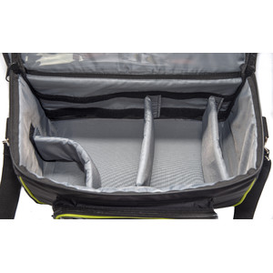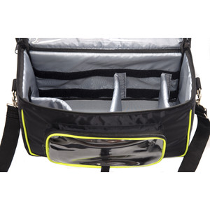 Die Tasche bietet keinen Platz für das Stativ oder die Motorisierte Montierung. Auch für den Tubus ist die Tasche eher knapp bemessen. Grund dafür sind die unteren Abgrenzungen die rund einen Zentimeter zu hoch geraten sind. Jedoch mit etwas Feingefühl kann man den Tubus in der Tasche verstauen und trozdem noch die Reissverschlüsse gut schliessen.
