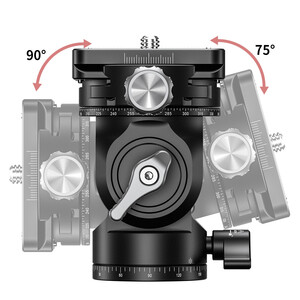 Die Dämpfung erlaubt ihnen seidenweiche horizontale Schwenks. Der vertikale Verstellbereich reicht von +90 / -75°. Durch die doppelte Panoramafunktion ermöglicht er die Aufnahme von schrittweisen Einzelaufnahmen die später zu einem Gesamtbild kombiniert werden können. Der Anschluß an das Stativ erfolgt über ein 3/8"-Schraubgewinde. Kameraseitig befindet sich eine Schnellwechselkupplung nach Arca-Swiss-Standard im Lieferumfang.